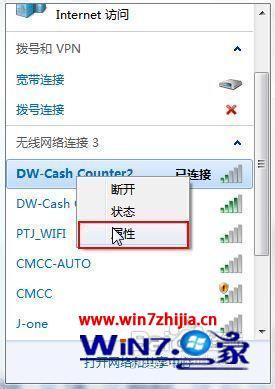 2、右键点击已经连接的无线网络,选择属性。