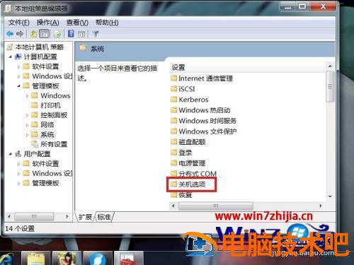 6、在该页面中找到“关机选项”,并双击它。