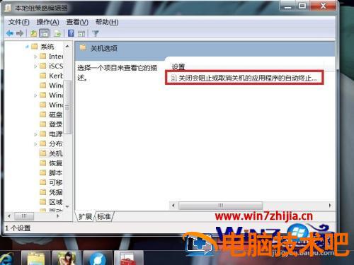 7、双击“关闭会阻止或取消关机的应用程序的自动终止功能”。