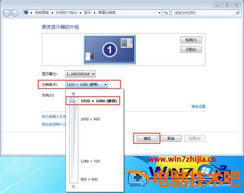 6、点击分辨率展开选择推荐的分辨率再点击确定即可完成 。