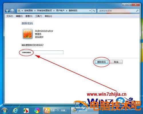 7、在确认是否删除密码的页面输入之前设置的密码(使用中的密码);然后再点击“删除密码”。之后,就成功的将电脑的开机密码给删除掉了。
