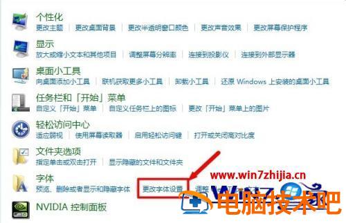 3、进入“外观和个性化”之后,找到“更改字体设置”,然后点击进入。