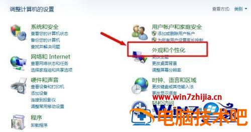 2、如果我们想要使得字体变回原样,则依次点击“开始”-“控制面板”-“外观和个性化”。