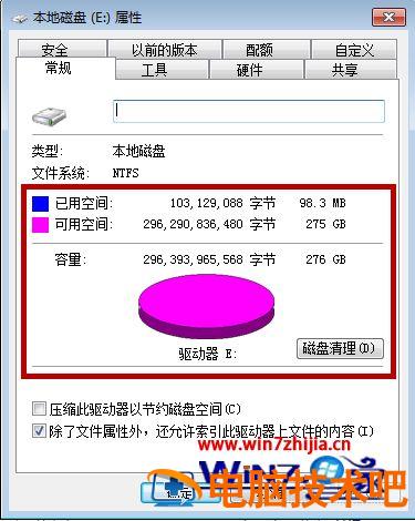 8、之后我们看一下自己的磁盘,一般数据不会全部删除,那些正在运行的数据不会删除。我们可以重启电脑将所有东西关闭,再次格式化一会,即可将其删除。不过基本不会100%空间显示空闲。