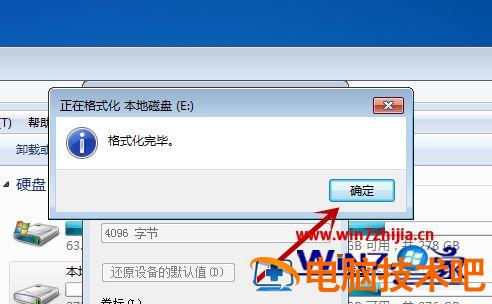 7、格式化完毕后会有一个提示,我们点击”确定“即可。