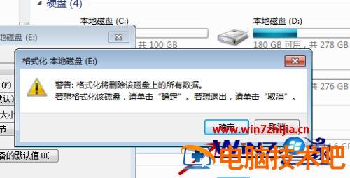 5、之后还会弹出一个提示,告诉我们格式化会删除里面的东西,我们点击”确定“,即可。