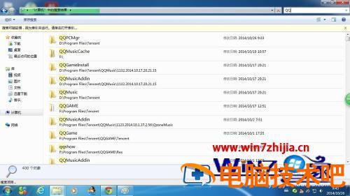 4、输入QQ会显示有在整个磁盘里面跟QQ有关的文件或程序。