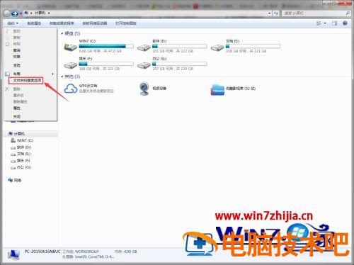 1、首先,我们打开桌面上的‘计算机’,然后点击左上角的‘组织’。