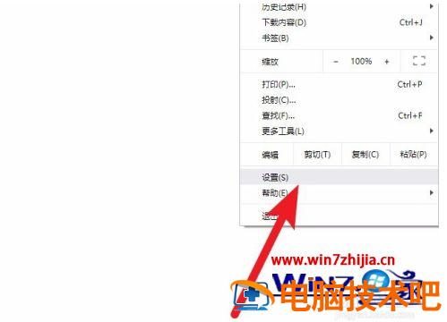 2、在下拉的菜单中选择设置选项。