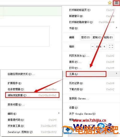 2、自定义及控制——工具——清除浏览数据。