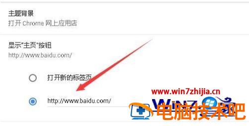 4、这时下面的各项即可选择了,我们选择下面的一项,然后输入主页的网址。这样以后再点击chrome浏览器工具栏上的主页按钮,就可以快速打开刚刚设置的主页了。