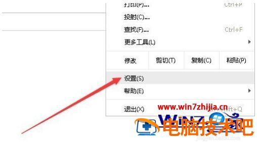 2、在打开的下拉菜单中,点击设置菜单项。