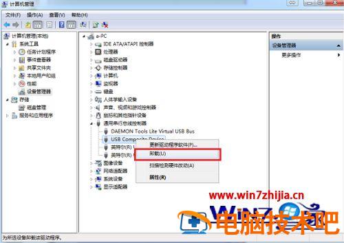 3、点击通用串行总线控制器,将下面的驱动全部卸载掉,这里需要注意的是台式机卸载了这些驱动,会导致键盘和鼠标不能使用,重启一下电脑会自动安装好这些鼠标键盘驱动。