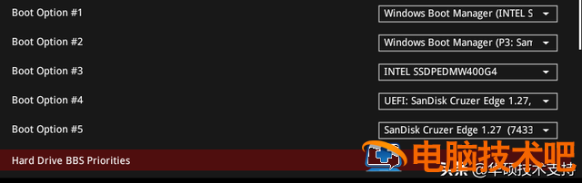 你需要这样做boot这个页面,右边的滚动条向下拉,你会看到一个非常重要的选项Hard Drive BBS Priorities,切换意味着硬盘BBS属性】:放一个完整的页面图:点击我们可以看到我们收到的所有硬盘信息,里面也需要调整顺位在这里,你可以完全看到我们连接的所有硬盘假如你想用WDC如果开头的硬盘是第一次启动,可以直接点击,直接选择【P1:WDC。。】这个硬盘是第一位调整后,我们可以看到boot option我们要选择的位置是WDC硬盘然后我们再看一遍boot option下的硬盘有哪些可调整的:看完整的清单,这里会有所有的硬盘信息,包括sata接口的WDC和Samsung固态硬盘,此时选择可启动硬盘。选择要打开的硬盘,然后按键盘F10,再按Enter按键,保存BIOS这样就可以设置了。