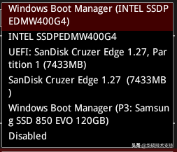 有两个例外,如果是你usb多个或多个sata插槽主板上有多个硬盘,我们可以在之前的图中看到sata两个硬盘连接个硬盘,但在上面boot option只看到一个sata硬盘