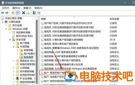 3、进入安全选项后双击右侧的“管理员账户状态”