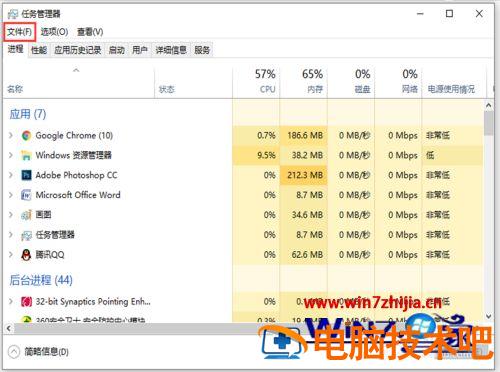 3、进入任务管理器页面,点击左上角的【文件】。