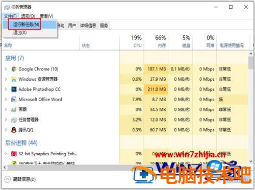 4、出现的下拉选项,点击【运行新任务】。