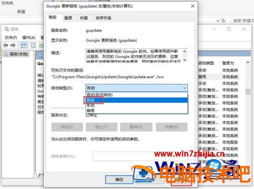 11、进入页面后,在启动类型中,选择【自动】,再点击右下角的【应用】。