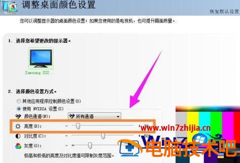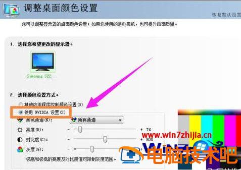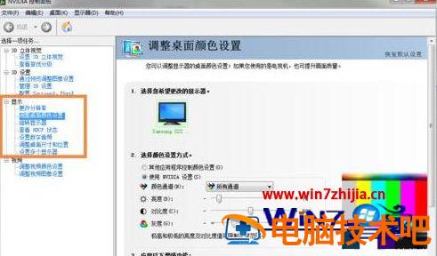 5、这时看到右方已经出现可以调节光度的选项了,但是这时候还是无法调节,因为要先选择“使用NVIDIA设置”后才能自行调节;