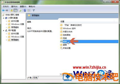 4、再双击管理模版中的【系统】。