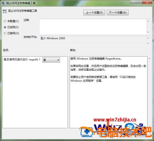 以上就是win7禁用注册表的方法,想把注册表给禁用了的话,可以按上面的方法来进禁用。