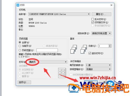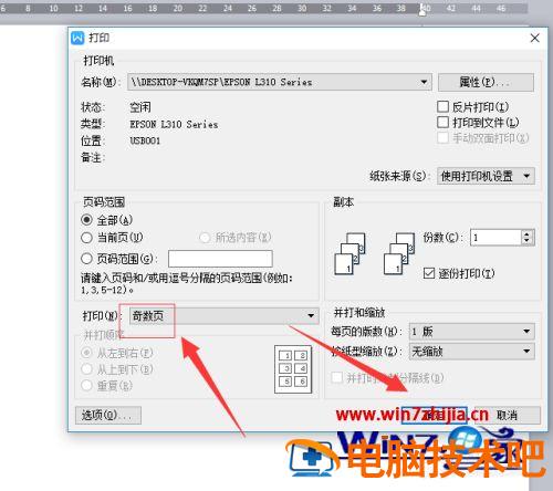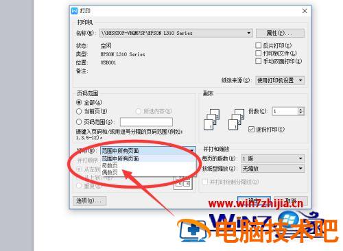 3、如果内容比较多我的建议是先打一面,然后统一打印另外一面。设置范围为先打印奇数页面。