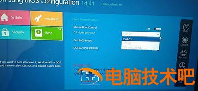 3、在Boot菜单中,将“Secure Boot Control”选项修改为“OFF”,修改完成后,会多出一个“OS Mode Selection”的选项,我们选择“CSM OS”即可,