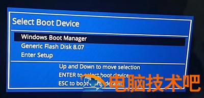 4、完成以上步骤后,点击右边的“Save”按钮进行保存,然后重启电脑,再按快捷键F12,在弹出的启动项窗口中选择U盘即可进行U盘启动,如下图所示(本文的U盘为Generic Flash Disk 8.07)。