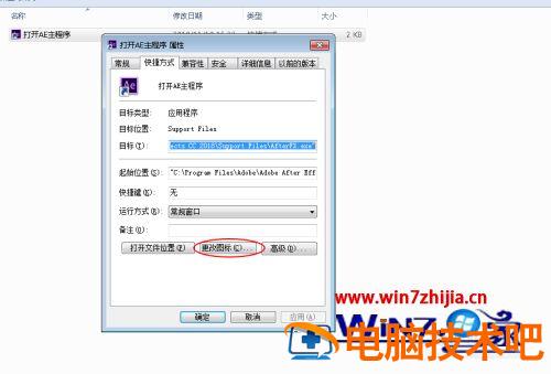 2、弹出属性窗口,找到“更改图标”选项,单击进入图标设置。