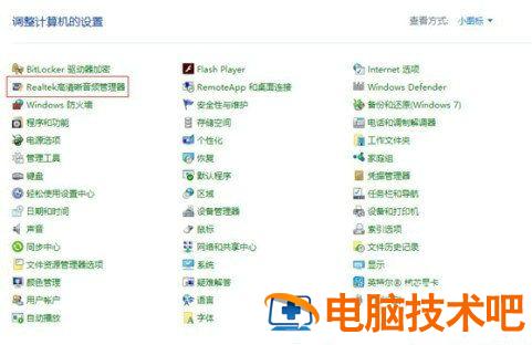 3. 在确认耳机本身和声卡驱动都没有问题后,我们打开“控制面板”,找到并点击“Realtek高清晰音频管理器”。然后点击插孔设置,在弹出窗口中将“禁用前面板插孔检测”勾选。