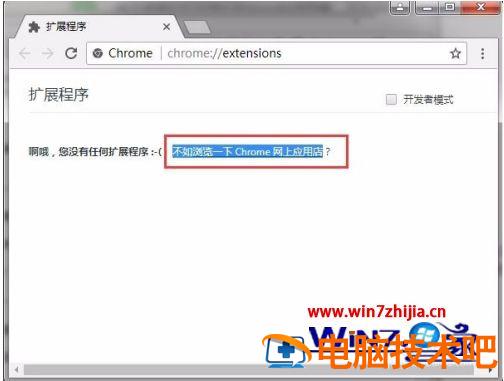 3、这样就会在浏览器新标签中打开扩展程序应用页面,在这个页面上其实我们可以直接点击浏览一下Chrome网上应用店,进去安装需要的插件。