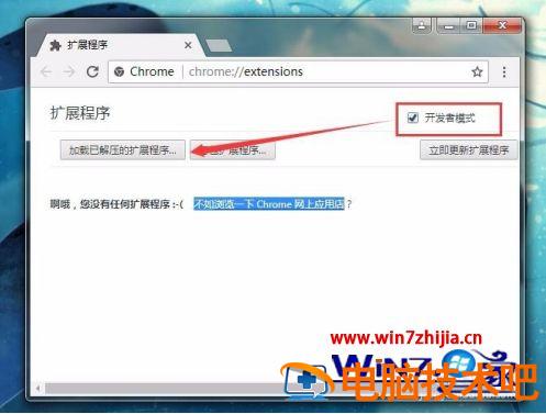4、我们要离线安装插件,需要先点击勾选开发者模式,就可以新增安装插件的功能。