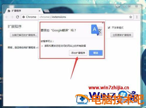 6、放开鼠标后就会弹出提示需不需要添加我们拖入进去的插件,我们点击添加扩展程序。