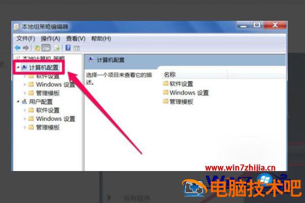 3、在左侧选项中,选择“计算机配置”这一项。