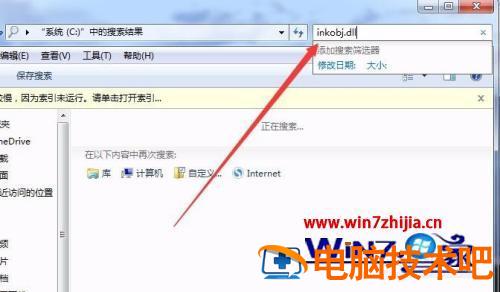 3、这时我们打开我的电脑上的C盘,然后点击右上角的搜索框,输入关键词inkobj.dll。