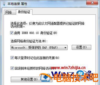 4、进入“本地连接属性”后,切换到“身份验证”选项卡,取消“启用IEEE 802.1X身份验证”,点击确定即可。