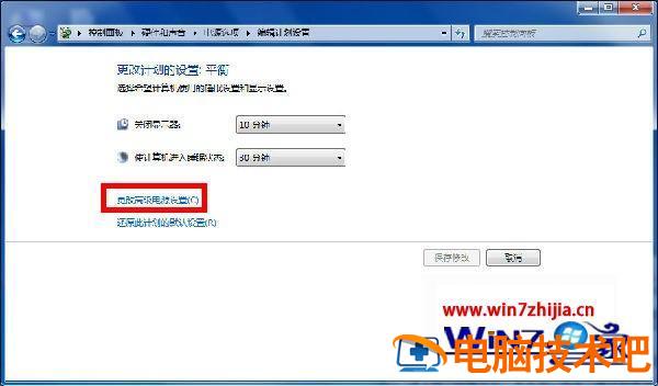 4、在“编辑计划设置”这里,也可以根据自己的需求设置,然后点击“更改高级电源设置”;