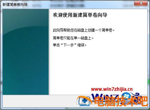 8、之后进入到新建卷向导中。
