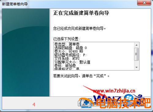 11、选择是否格式化之后,点击“下一步”,最后点击“完成”,即可完成新建分区。
