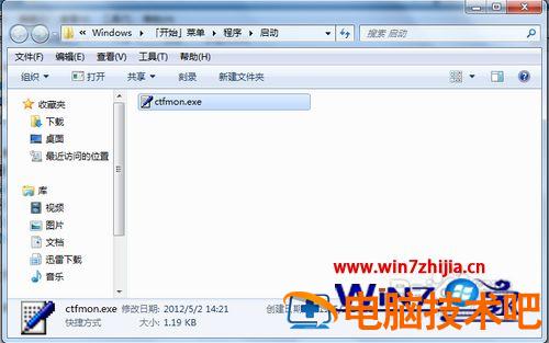 5、之后我们在桌面可以看到多了一个名为Ctfmon.exe的快捷方式,我们将其剪切,然后打开开始菜单程序里面的启动文件夹,将其粘贴进去。