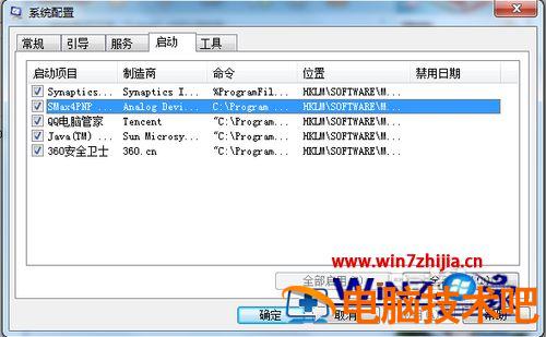3、在打开的系统配置窗口中,我们切换到启动选项卡下,找到一个名为Ctfmon的选项,勾选前面的小勾,由于这里我没有这个选项。
