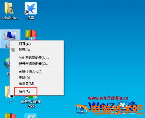 3、接着就是回到桌面,右击【计算机】图标,选择【属性】选项。