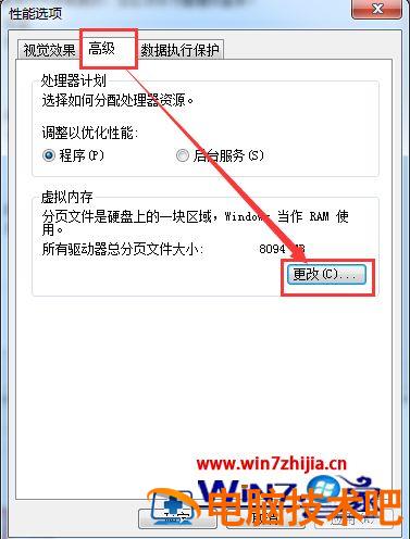 6、然后就是点击弹出的窗口中的【高级】下的【更改】。