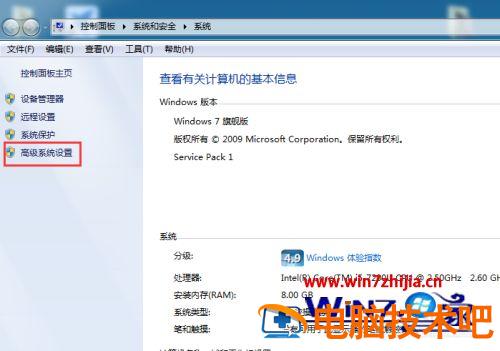 4、然后就是点击弹出的界面左边的【高级系统设置】。