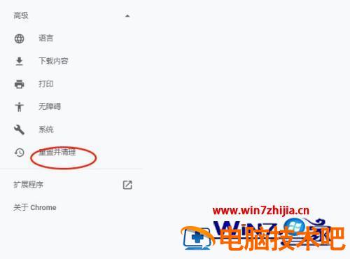 4、尝试清理有害的软件,设置面板中点高级-重置并清理如下图。