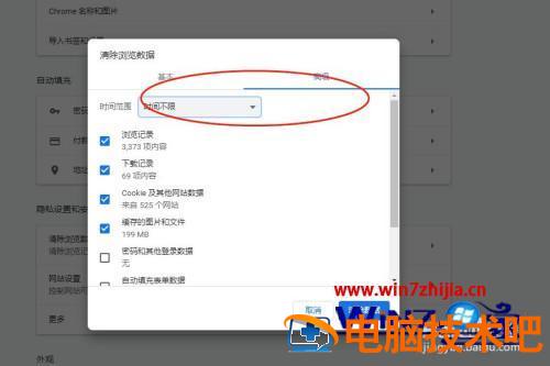 3、然后浏览器会弹出清理选项,然后选择高级-时间限然后开始清理如下图。
