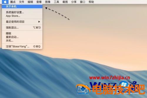2、接下来请点击菜单选项中的【关于本机】一栏。