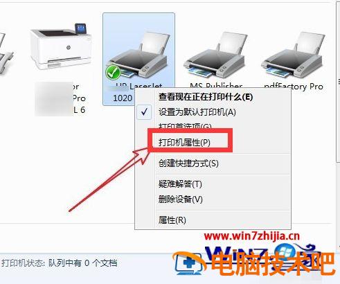2、进入后,右击打印机图标,选择“打印机属性”菜单项。