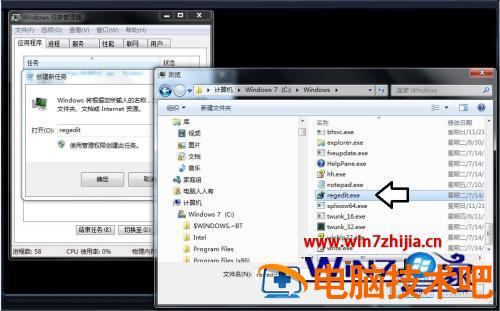 3、比如,只要看见黑屏中的鼠标箭头,不妨使用Ctrl+Alt+Del组合键→调出任务管理器→文件→新建任务→找到系统盘Windows文件夹下的explorer.exe→确定→即可显示桌面和任务栏。